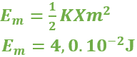 Un pendule mécanique horizontal de masse oscille autour de sa position d’équilibre. L’amplitude du mouvement est et la constante de raideur du ressort vaut Calculez l’énergie mécanique de l’oscillateur.