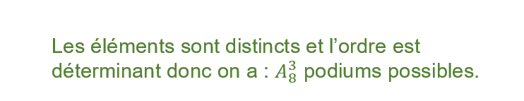 Dans une course de 100m, il y a huit partants numérotés de 1 à 8. Sur le podium, il y aura les trois médailles (or-argent-bronze).