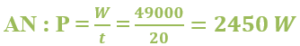 Un monte –charge effectue un travail de 49kJ en 20s. Calculez la puissance de ce moteur.