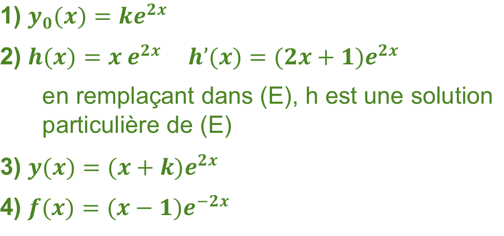 QUESTION 19On considère l’équation différentielle1) Résoudre sur IR l’équation différentielle2) Soit h la fonction définie sur IR parDémontrer que h est une solution particulière de l’équation différentielle (E).3) En déduire l’ensemble des solutions de l’équation différentielle(E).4) Déterminer la solution particulière f de l’équation (E) qui vérifie la condition f (0)= - 1 QUESTION-19-Equation différentielle On considère l’équation différentielle1) Résoudre sur IR l’équation différentielle2) Soit h la fonction définie sur IR parDémontrer que h est une solution particulière de l’équation différentielle (E).3) En déduire l’ensemble des solutions de l’équation différentielle(E).4) Déterminer la solution particulière f de l’équation (E) qui vérifie la condition f (0)= - 1 RETOUR AUX QUESTIONS Afficher la réponse Retour aux Questions Retour aux Chapitres Retour aux Matières