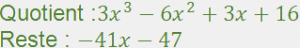 QUESTION 29Effectuer la division euclidienne de A par B.QUESTION-29-ALGEBRE : Composition des ApplicationsEffectuer la division euclidienne de A par B. RETOUR AUX QUESTIONS Afficher la réponse Retour aux Questions Retour aux Chapitres Retour aux Matières