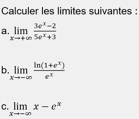 QUESTION 30QUESTION-30-Fonction exponentielle RETOUR AUX QUESTIONS Afficher la réponse Retour aux Questions Retour aux Chapitres Retour aux Matières