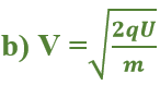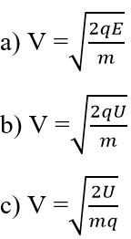 Une particule de charge q positive, accélérée par une d.d.p U, acquiert une vitesse V dont l’expression est :