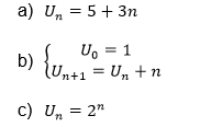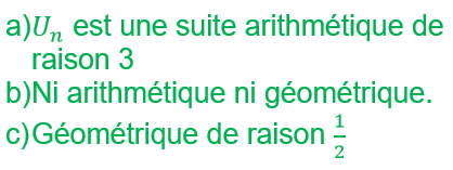 Pour chacune des suites suivantes, déterminer s’il s’agit d’une suite arithmétique, géométrique ou ni arithmétique ni géométrique.