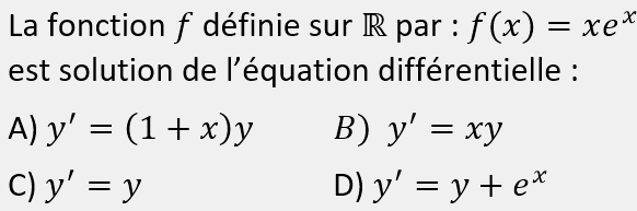 QUESTION 4Laquelle de ces affirmations est vraie ?QUESTION-4-Equation DifferentielleLaquelle de ces affirmations est vraie ? RETOUR AUX QUESTIONS Afficher la réponse Retour aux Questions Retour aux Chapitres Retour aux Matières