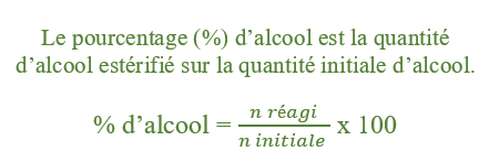 QUESTION 40Définis le pourcentage d’alcool estérifié.QUESTION-40-Les alcools / acides carboxyliquesDéfinis le pourcentage d’alcool estérifié. RETOUR AUX QUESTIONS Afficher la réponse Retour aux Questions Retour aux Chapitres Retour aux Matières