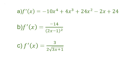 QUESTION 59Calcule la dérivée f'(x) dans chacun des cas suivants :QUESTION-59-Analyse : DERIVABILITECalcule la dérivée f'(x) dans chacun des cas suivants : RETOUR AUX QUESTIONS Afficher la réponse Retour aux Questions Retour aux Chapitres Retour aux Matières
