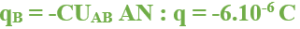 Calculez la valeur de la quantité d’électricité portée par l’armature B du condensateur.