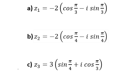 Les écritures suivantes sont-elles sous forme trigonométrique si non les transformer pour obtenir une écriture trigonométrique.